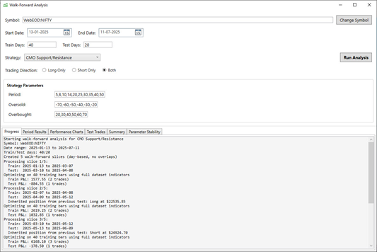 • Date-Based WFO: Modular indicator rule system with daily optimization